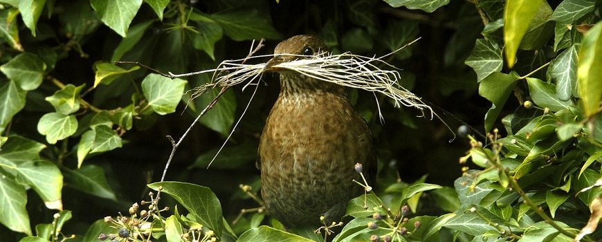 De merel zingt het hoogste lied vanaf daken en andere uitkijkposten. Zijn broedseizoen is begonnen en de eerste nesten moeten worden gebouwd. Let eens op of je merels in de buurt met takjes rond ziet vliegen; grote kans dat er merels aan het bouwen zijn. Het nest bestaat uit droog gras en kleine takjes, en heeft de vorm van een grote kom. De binnenkant bekleedt de merel met modder, fijn gras en plantenstengels. Als het nest zorgvuldig opgebouwd is, is het nu wachten tot de eerste jongen over een paar weken uit het ei kruipen.
