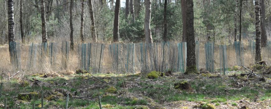 Tekst en foto's: Barbara Groen, Bosgroepen (leadfoto: jonge aanplant in het bos, beschermd tegen wildvraat)