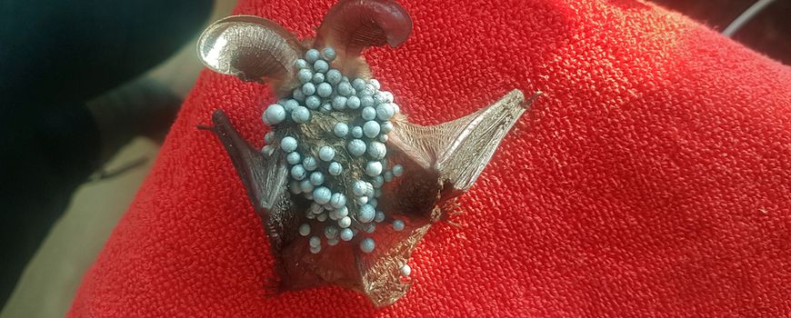 Dit is waarschijnlijk wat de grootoorvleermuis overkwam, die Ferdy Timmerman op zondag 18 april vond in het Belmonte Arboretum in Wageningen. Ferdy bedacht zich geen ogenblik en klom in de boom om het dier te vangen. Het is vervolgens naar een vleermuizenopvang gebracht, maar daar konden ze niet veel meer doen. Het diertje heeft het helaas niet gered.