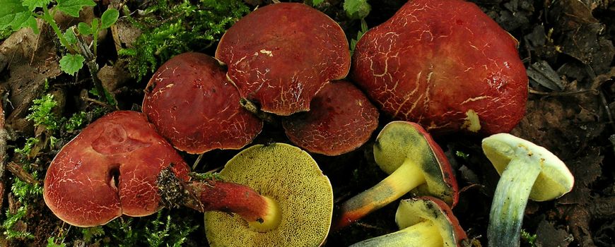 Foto's: Henk Huijser (leadfoto: Wijnrode boleet met een aanvankelijk wat bobbelig hoedoppervlak dat opbreekt in onregelmatige plakjes en geel vlees dat blauw verkleurt en voorkomt op vochtige plekken onder eiken); Tjerk Nawijn; Gosse Hage; Nico Dam; Machiel Noordeloos