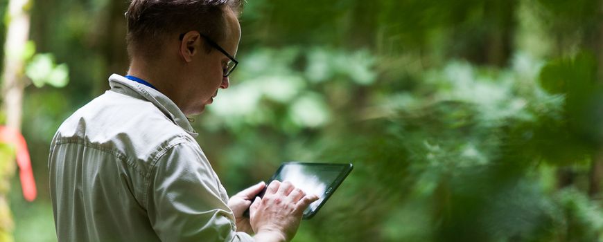 “Voorheen gebeurde de verwerking van alle bevindingen veelal achteraf op kantoor”, blikt Bart terug. ”Dankzij de huidige technologie kunnen we alle data van de inventarisatie meteen ter plaatse en zeer gedetailleerd vastleggen. Alle elementen op papier noteren is niet alleen zeer tijdrovend, het draagt ook niet automatisch bij aan de integraliteit. Het is dus belangrijk om goede instrumenten of tools te hebben en die zijn er inmiddels. Via de smartphone of een tablet kun je in het veld beschikken over een gedetailleerde kaart, onderliggende kaarten en zelfs de eerdere inventarisaties die gedaan zijn of die gelijktijdig plaatsvinden als men met meerdere mensen tegelijk in een gebied aan het bostracken is. Het systeem is gekoppeld aan GIS. Bij de Bosgroepen gebruiken we hoogwaardige en zeer nauwkeurige gps-ontvangers, waarmee je de locatie heel precies kan vastleggen. Dat is onmisbaar bij het integraal uitwerken van je beheerstrategie. Je registreert ter plekke en maakt de bosbeheerplanning als het ware in het bos, in plaats van achter het bureau. Na een rondgang kom je thuis en je bosbeheer is bij wijze van spreken integraal gepland voor de komende jaren”.
