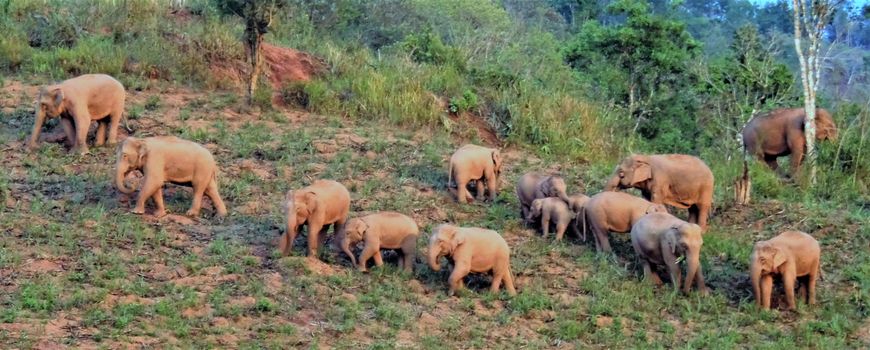 Stichting IFAWDe kudde leefde vroeger in het Xishuangbanna National Nature Reserve en bestond toen ze het natuurreservaat verlieten uit zestien olifanten. Sinds het begin van de trek in maart 2020 is er één olifantenkalfje geboren en twee stierolifanten keerden op 24 april weer terug richting waar ze vandaan kwamen. Ze zijn nog steeds ver van het natuurreservaat en het is onbekend waar ze van plan zijn naartoe te lopen. Eén stier verliet de groep op 6 juni en bevindt zich nu op ongeveer twaalf kilometer van de groep. Op dit moment zetten veertien olifanten hun reis voort, waaronder zes volwassen vrouwelijke en twee volwassen mannelijke olifanten, drie nog niet volwassen olifanten en drie kalveren. Het is dus een relatief jonge kudde.