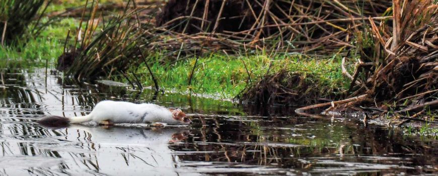 ZoogdierverenigingDe hermelijn (Mustela erminea) is een kleine marter en het enige zoogdier in Nederland dat ’s winters van vachtkleur verandert. De onderzijde is altijd wit en in de zomer gaat dit via een scherpe begrenzing over in licht- tot donkerbruine bovendelen. In het najaar worden ook de bovendelen wit. De staartpunt blijft onveranderd zwart. Er zijn overigens ook individuen die niet helemaal wit worden en in Ierland blijven hermelijnen zelfs gewoon bruin in de winter. In de afgelopen winter viel er in Nederland bedenkelijk weinig sneeuw, wat de aanleiding was om eens te onderzoeken hoe het zit met het wit worden van hermelijnen in ons land.