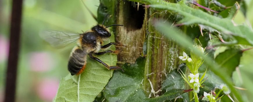 EIS Kenniscentrum InsectenOp 29 juni zag Gert Huijzers tijdens het vlinderen in Willinks Weust Heksenbos in Winterswijk uit zijn ooghoeken enkele malen een behangersbij passeren en tussen de planten verdwijnen. De betreffende behangersbij leek neer te strijken op een circa twee meter hoge kale jonker. Na op de knieën te zijn gegaan, bleek ze met een blaadje een gaatje in de stengel in te gaan. Het gaatje zat op ongeveer 75 centimeter hoogte, met een distelblad als bescherming en afdakje. Na hooguit vijf minuten werd het nest weer werd verlaten, om dan na maximaal tien minuten weer terug te keren met een nieuw 'behangetje'. Dit herhaalde zich diverse keren, zodat er genoeg mogelijkheden waren voor het maken van foto’s.