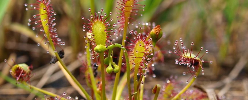 Nature TodayVleesetende planten klinken als iets voor tropisch regenwoud. Toch hebben we in Nederland ook onze eigen vleesetende planten. Kleine zonnedauw bijvoorbeeld, een plantje dat met kleverige druppels insecten vangt. Deze plant groeit op voedselarme grond en vult zijn dieet aan met insecten. Daardoor kan hij groeien op plekken waar andere planten dat niet kunnen. In juli en augustus bloeit de kleine zonnedauw, met witte bloemen op een relatief lange stengel. Het is in Nederland geen heel algemene soort. Je moet dus weten waar je moet zoeken. Hij komt voor op zandgronden in Midden-, Oost- en Zuid-Nederland op plekken die in de winter onder water staan, maar ‘s zomers droog zijn. Vaak komt het erop neer dat je kleine zonnedauw rond vennetjes kan vinden.