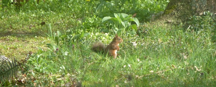 De eekhoorntjes begraven nootjes in de tuin. Je ziet ze soms op een later moment overal graven en zoeken: waar heb ik die dingen nou gelaten? In de tijd dat mijn schoonvader het zomerhuisje had, waren de eekhoorntjes zo vertrouwd met hem dat ze binnen in de kast zelf de walnootjes kwamen halen! Bij ons is de zelfbediening beperkt tot het voederhuisje in de tuin.
