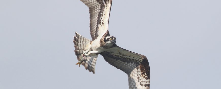 Provincie Noord-BrabantTot 2016 verbleven er geen visarenden in Nederland. Dat veranderde toen er een paartje neerstreek in de Biesbosch. Het was het begin van een bloeiende en groeiende populatie. “In totaal zijn er sinds 2016 al 29 jonge visarenden uitgevlogen in de Biesbosch. Dat is de feitelijke levering van alle Biesboschparen”, vertelt Thomas van der Es met enige trots. Hij is namens Staatsbosbeheer de terreinbeheerder van de Biesbosch en houdt de visarenden nauwlettend in het oog. “Dit jaar zijn er acht juvenielen, dat zijn dus acht jonge vogels, uitgevlogen. Zij krijgen nu, eind augustus, vrijwel geen eten meer van hun ouders. Daarmee worden ze gestimuleerd om zelf hun eten te vangen. Ze oefenen hun techniek in helikopteren en duiken. Als ze het voldoende onder de knie hebben, zullen ze op trektocht gaan”, weet Thomas.