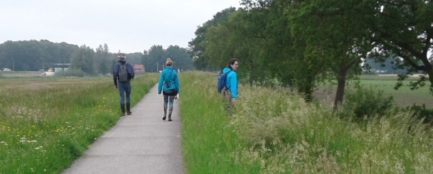 De zoektocht per fiets voerde van Vollenhove over de oude zeedijk in zuidelijke richting naar buurtschap De Krieger, om vervolgens binnendoor weer terug te keren naar Vollenhove. Onderweg stopten we regelmatig om naar klavertjes te zoeken op kansrijke plekken, waarbij we vanwege het historische voorkomen extra aandacht schonken aan de graslandpercelen ten zuiden van de Kadoelersluis.