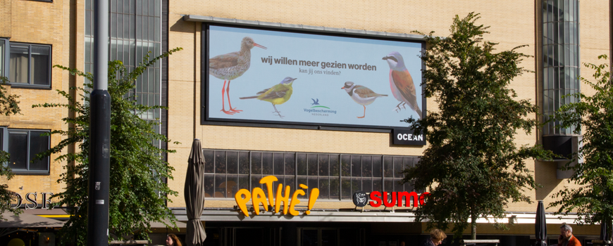 Vogelbescherming NederlandWat begon met een idee van communicatiebureau KesselsKramer, dat met een zelfbedachte briefing aan de slag ging, mondde uit in grote winst voor bescheiden en onbekende vogelsoorten. Onder het mom van ‘bekend maakt bemind’, ontstond het idee om voor bescheiden vogels onbescheiden veel aandacht te zoeken. Vogelbescherming raakte enthousiast en samen werd besloten het idee in te zenden voor de Ocean Outdoor Digital Creative Competition Amsterdam, in de categorie non-profit. Met de eerste prijs, van 500.000 euro aan mediawaarde, als resultaat.