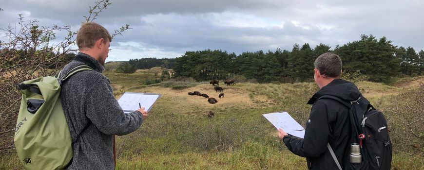 PWNBijna drie weken lang konden de Britse rangers Thomas Gibbs en Donovan Wright zien en ervaren hoe wisentenpopulaties in Nederland worden gemonitord en beheerd. Het moederproject op het Kraansvlak in Zuid-Kennemerland van drinkwaterbedrijf en natuurbeheerder PWN diende daarbij als startpunt. Hier leeft een kudde, van inmiddels veertien dieren, die in 2007 werd geïntroduceerd als een onderzoeksproject van PWN en ARK Natuurontwikkeling in samenwerking met een drietal andere natuurbeheerders. Destijds was het een gewaagd experiment want de wisent, die toen al zo’n honderd jaar in het wild was uitgestorven, leek van oorsprong vooral voor te komen in dichte bossen. Maar het dier bleek zich wonderwel thuis te voelen in de duinen en helpt daar nu het landschap open en dynamisch te houden. Daarnaast levert het project belangrijke informatie op over onder meer de voedselstrategie van de wisent, en het effect van de soort op het duinlandschap en de flora en fauna in het gebied.