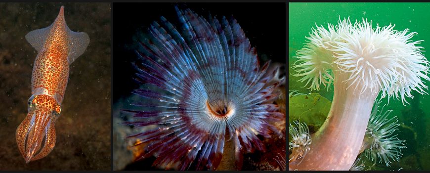 Foto's: Floor Driessen (leadfoto links: deze groep inktvissen - de Pijlinktvissen - werd lang geleden ook aangeduid als 'zeepijlen'. Afgebeeld is de Dwergpijlinktvis Alloteuthis subulata); Marion Haarsma (leadfoto midden: Waaierkokerworm (Sabella pavonina)); Peter van Bragt (leadfoto rechts: Zeeanjelieren (Metridium senile); Mick Otten; Martijn Spierenburg; Maarten Mulder; Gerrit Doeksen