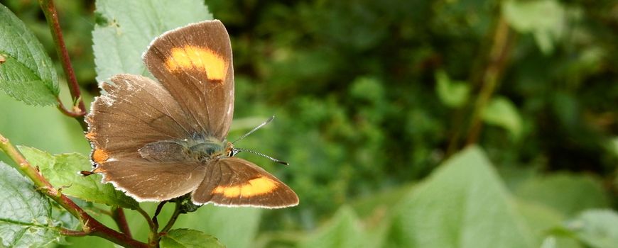Zoals de naam al verklapt, is sleedoorn een belangrijke waardplant van de sleedoornpage. De vlinders zetten hun eitjes het meest af op sleedoornstruiken die redelijk zonnig staan en niet te oud zijn. Nu hoor ik u al denken: “Oh, dan moet ik snel eens daar en daar gaan zoeken, want daar staat sleedoorn volop.” Uiteraard is iedereen vrij om overal te zoeken, maar als we naar het verspreidingskaartje hieronder kijken, zien we een opvallend patroon. De sleedoornpage komt vooral voor in de overgangen van zand naar klei en veen. Niet midden op de Veluwe of de Utrechtse Heuvelrug, maar ook niet in de Friese zeeklei of in de Betuwe. Wel is de sleedoornpage in Zuid-Limburg aanwezig. Als u dus op zoek wilt gaan naar eitjes van de sleedoornpage, dan is de vindkans het grootste in die genoemde overgangen en in de omgeving van de plekken waar de soort bekend is. Dan zijn er op het kaartje nog genoeg potentieel geschikte plekken te vinden. Daar komt ook vast en zeker sleedoorn voor en wie weet, sleedoornpage.