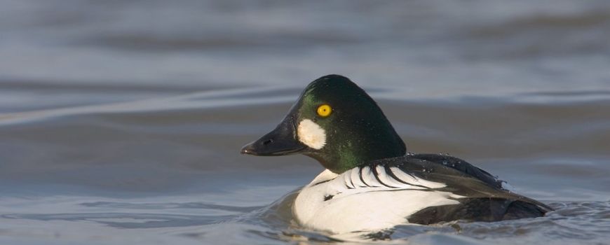 Nature TodayIn de winter kun je in Nederland eenden met een groene kop en opvallend gele ogen tegenkomen. Het zijn brilduikers, die hier overwinteren. De mannetjes hebben het opvallende uiterlijk, waar de Engelse soortnaam ‘goldeneye’ vandaan komt. Vrouwtjes hebben een bruine kop en vallen minder op. De Nederlandse naam heeft zijn oorsprong in de witte vlekken op de kop van het mannetje. Hierdoor lijkt het net alsof deze eenden een bril op hebben. Je kunt brilduikers in principe in heel Nederland zien, maar de randmeren zijn goede plekken om te beginnen met zoeken. Daar overwinteren namelijk veel van deze vogels. Brilduikers zijn in januari en februari nog volop te vinden, daarna trekken ze weer naar het noorden; op de enkeling die in Nederland broedt na.