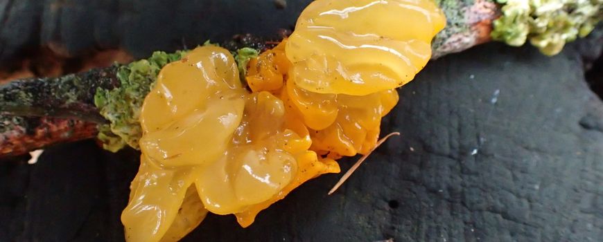 Nature TodayDe gele trilzwammen zijn er weer. Zodra het echt wat kouder wordt, kan je deze gele puddinkjes aantreffen op dode takken van onder andere zomereiken. Ze komen overal in Nederland voor. Blijkbaar vinden ze kou wel lekker. Dat is op zich merkwaardig, want ze zijn heel teer. Bevriezen kunnen ze ook, maar als het weer wat warmer wordt, komt het puddinkje weer tot leven en ‘trilt’ het rustig verder alsof er niets gebeurd is. Sommige exemplaren zijn in een jong stadium eerst oranje en pas later helder geel. Deze zwam is een zogenaamde biotrofe parasiet, wat betekent dat hij parasiteert op een ander levend organisme. Ondanks dat je dat niet altijd ziet, zal je dan ook vaak de paars gekleurde eikenschorszwam in de nabijheid vinden. Kan je die ook vinden?