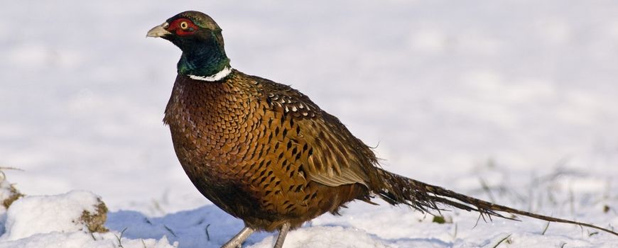 Nature TodayDe bekende fazant komt oorspronkelijk uit Azië. Vanwege het mooie verenkleed van de mannetjes en de smaak van hun vlees werd het een geliefde vogel in Europa, die hier volop is uitgezet. Oorspronkelijk zijn fazanten trekvogels, maar dat gedrag is in Europa veranderd. Hier zijn fazanten het hele jaar te zien in het land waar ze broeden. In de winter vormen ze soms grotere groepen dan in de zomer. In het soms zo grauwe winterlandschap valt een prachtig gekleurd fazantmannetje extra op!