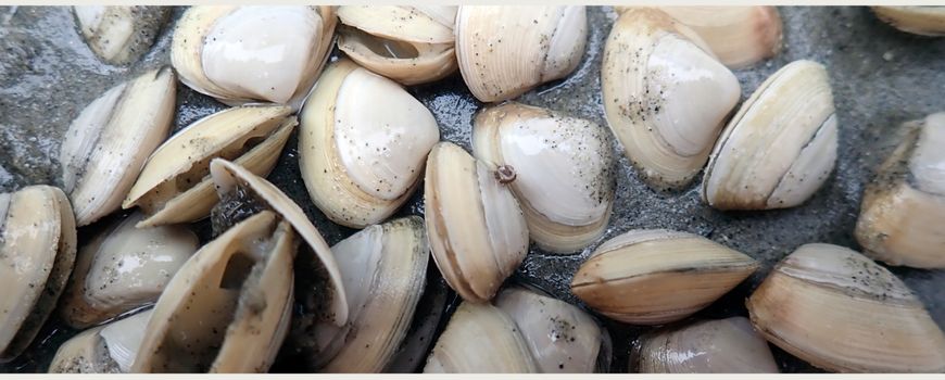 Foto's: Adriaan Gmelig Meyling (leadfoto: In groten getale levend aangespoelde Halfgeknotte strandschelpen); Henk Dekker, Stichting ANEMOON