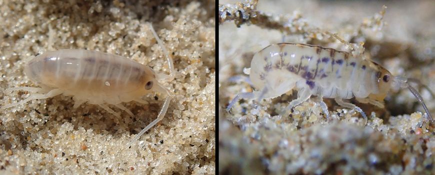 Foto's: Adriaan Gmelig Meyling (Leadfoto links: Gewone strandvlo; rechts: Bestippelde strandvlo (Deshayesorchestia deshayesii); Julia van Beinum; Project Het Groene Strand