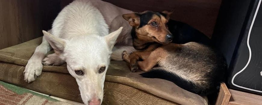 Foto's: Shelter Pif (leadfoto: honden bij Shelter Pif zoeken beschutting onder een bureau tijdens de crisis in Oekraïne, 2022)