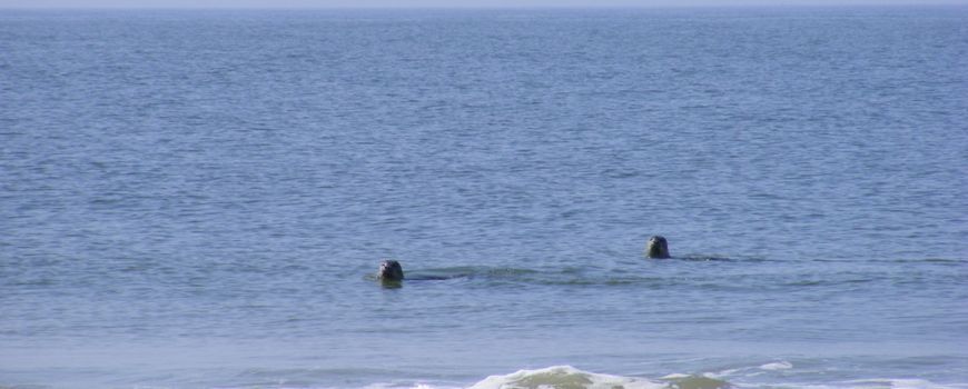 Rond de veertigduizend zeehonden leven er in Nederland, waarvan ongeveer driekwart in de Waddenzee verblijft. Toch is de kans om ze vanaf de Noordzeestranden te zien veel groter dan de meeste strandbezoekers vermoeden. “Ik weet zeker dat ze zo nu en dan zwemmers nieuwsgierig van zeer dichtbij bekijken. Ik heb er wel eens een gehad die even aan mijn zwemvlies trok”, zegt Ernst Schrijver, zeebioloog van het ARK Noordzeeprogramma. “Met hun kop boven water houden ze wat meer afstand tot een zwemmer. Soms tot ongeveer vijftien meter. Soms volgen zeehonden je nieuwsgierig wanneer je op een rustig moment over het strand loopt.”