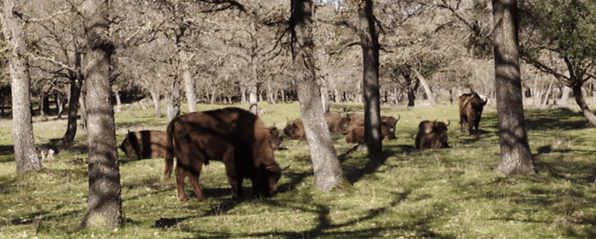 In Spanje komen de twee stieren én drie jonge koeien in een gebied van 600 hectare, met vooral dennenbomen en grasland. Het is een rijker gebied dan ze gewend zijn. Er zijn dan ook voldoende voedingsstoffen te vinden voor de grote kudde die het met de komst van deze vijf dieren is geworden. In het gebied leefde al een groep van 22 dieren. Fernando Moran van European Bison Conservation Center of Spain, de coördinator van de meeste wisentgebieden in Spanje, vertelt over het loslaten van de wisenten in hun nieuwe leefgebied. “Na een reis van 24 uur kwam de vrachtwagen aan. De eerste stier, die bij het inladen ook de meeste tijd nodig had om erin te gaan, wilde er maar niet uit. Het kostte uren geduld om uiteindelijk het dier de vrachtwagen uit te zien gaan. De andere vier dieren volgden gelukkig sneller. Op het moment van loslaten was de kudde die daar al leefde in een heel ander deel van het gebied. Toch kwamen deze wisenten al gauw met de nieuwe dieren kennismaken. We hadden eigenlijk gehoopt dat de vijf Nederlandse wisenten wat meer tijd zouden hebben om te wennen, maar de kennismaking verliep gelukkig rustig en ontspannen.“ (tekst gaat verder onder foto's)