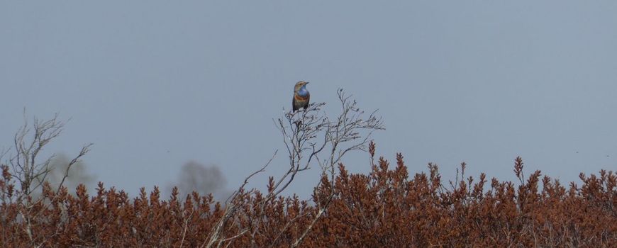 Nature TodayPrachtige vogels die blauwborsten! Ze werden vroeger geclassificeerd bij de lijsterachtigen, maar tegenwoordig meer bij de vliegenvangers. En zo gedraagt een blauwborst zich meestal ook, opvliegend vanuit een zangpost naar voorbijvliegende insecten, net als vliegenvangers doen. Hij is zo groot als een roodborstje. Deze vogel zit meestal op een hoge post te zingen, waarbij een grote variatie aan geluiden wordt voortgebracht met daarin ook imitaties van andere vogels. In de blauwe borst van het mannetje (de vrouwtjes hebben die niet) zit in onze streken een witte vlek (op de foto net niet te zien). In het oosten komen blauwborsten voor met rode vlekken. De blauwe borst is afgezet met een bruinrode band en die kleur vind je ook terug in de met een zwarte band afgezette staart. Een bijzondere combinatie. De blauwborst is onder andere te vinden in gebieden met riet en langs oevers van grote wateren. Hier hebben stelletjes een nest gemaakt, waar de blauwborsten nu broeden op hun eieren. Binnenkort worden de eerste blauwborstkuikens van het jaar weer geboren.