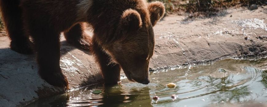 Foto's: White Rock Bear Shelter (leadfoto: Luba de beer drinkt uit een kleine vijver in Save Wild's White Rock Bear Shelter buiten Kiev, Oekraïne); Julia Cumes, IFAW