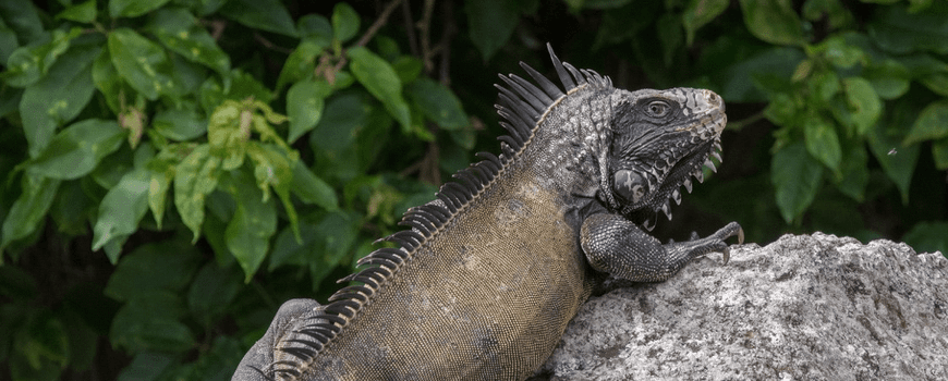 Foto's: Thijs van den Burg (leadfoto: Volwassen leguaan op een rots op Saba)