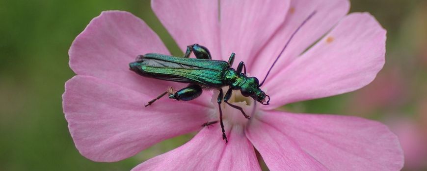 Nature TodayBoktorren zijn over het algemeen langwerpige kevers waarvan de antennes langer zijn dan het lichaam. Een groep die zich gedraagt als, en er vaak bijna net zo uitziet, is de familie van de schijnboktorren. De fraaie schijnbok of fraaie schijnboktor heeft een mooie groene metaalglans. De vrouwtjes hebben dunne poten, maar de mannetjes hebben sterk opgezwollen dijen, een soort ‘spierballen’ waar Popeye (wie kent hem nog?) jaloers op zou zijn. Dit kenmerk is typisch voor verschillende soorten schijnboktorren. In dit jaargetijde kan je deze fraaie boktorsoort vinden in bloemen. Hier zijn ze op zoek naar nectar en stuifmeel en dus onderdeel van de bestuiving van planten door insecten. Een nuttig en mooi beestje!