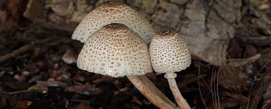 De Spikkelplooiparasollen die Piet Brouwer fotografeerde kwamen in een schaduwhoek van de achtertuin tevoorschijn. Hier worden oude snippers en ander houtafval gedumpt. De dumpplek ligt vlak aan de kant van een sloot, dus van droogte en zon hadden de paddenstoelen weinig last. De microscopische details gaven in dit geval extra zekerheid bij de determinatie.