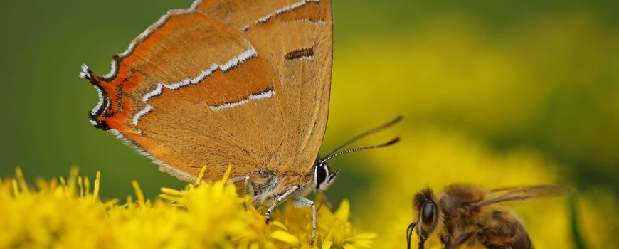 Stichting BargerveenDe Sleedoornpage (Thecla betulae) is een opvallende, oranje verschijning. Ondanks dat het een opvallende vlinder is, kent deze soort een verborgen bestaan. Zo verborgen zelfs dat voor de monitoring van populaties uitsluitend de eitjes worden geteld. Een van dé bolwerken van deze zeldzame soort – en de enige populatie in Noord-Brabant - bevindt zich rond het voormalig zandwingebied de Kraaijenbergse Plassen bij Cuijk. De soort laat echter in dit bolwerk wel een achteruitgang zien. Dit is aanleiding geweest voor de provincie om een onderzoek te starten naar de habitateisen van de sleedoornpage in relatie tot beheermaatregelen.