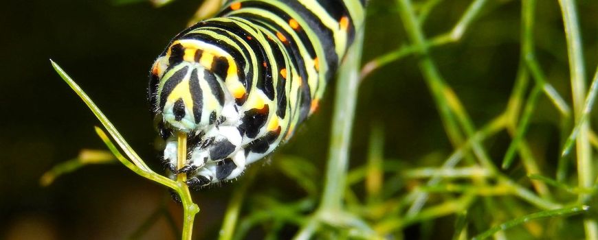 De rupsen van de koninginnenpage leven op diverse schermbloemigen. De worteltjes in de moestuin zijn geliefd en daar worden dan ook vaak rupsenvondsten gemeld. Dat komt natuurlijk vooral omdat de tuiniers er daar bovenop zitten en dus snel in de gaten hebben als er een rups aan het eten is. Ook planten als venkel en dille, die je ook vaak in moestuinen aantreft, zijn geliefd bij de rupsen van de koninginnenpage. Buiten de tuin wordt onder andere wilde peen (de ‘wilde’ wortel) gebruikt. Deze staat veel in bermen en groenstroken en het vinden van een rups is daar vaak niet zo eenvoudig. Als je ze wilt vinden moet je er wel nu bij zijn, want nu zijn ze groot en dus relatief opvallend. De rupsen gaan vanaf nu over naar het popstadium, waarin ze de winter doorbrengen. Ze zoeken daarvoor stevige pekken om te zorgen dat ze daar een aantal maanden lang goed kunnen hangen, alvorens in mei weer als vlinder tevoorschijn te komen. Die plekken kunnen soms meters verwijderd zijn van de plek waar ze als rups zaten. De poppen zijn meestal bruin, en soms groen.