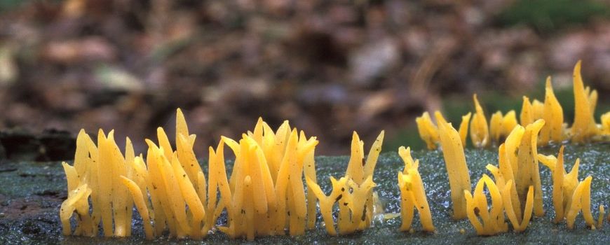 Nature TodayJe kan hem onaanzienlijk vinden, of juist charmant. Het geel hoorntje is een paddenstoel, maar heeft geen hoed of duidelijke steel. Het zijn weinig meer dan gele stekeltjes van een centimeter lang. Ze groeien op vochtig, dood hout zonder schors. Op zo’n glibberige oude boomstam dus. Overal waar die te vinden zijn, komt het geel hoorntje voor. Onaanzienlijk of niet, langzaamaan eten ze de hele boomstam op. Het is trouwens met het blote oog niet mogelijk om het geel hoorntje te onderscheiden van het gaffelhoorntje en het knotshoorntje. Zie je een groter en vertakt exemplaar, dan heb je het kleverig koraalzwammetje gevonden.