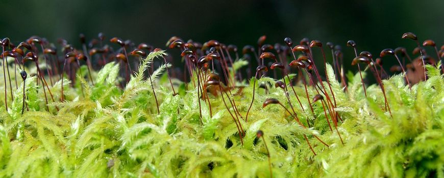 In deze tijd van het jaar groeien er dunne onbebladerde steeltjes uit de zijkant van stengels recht omhoog. Aan het eind daarvan staan eironde, gekromde sporenkapsels. De stengels en kapsels zijn bedekt met minieme bobbeltjes. In het begin zijn ze nog groen, maar ze kleuren later langzaam naar een mooi glimmend roodbruin. Op de bovenkant van het sporenkapsel zit een kegelvormig dopje dat niet uitloopt in een snaveltje. Als dat er af valt, wanneer de sporen rijp zijn, kan je de tanden zien. Bij nat weer beschermen ze de inhoud, maar bij droog weer krommen ze naar buiten zodat de sporen weg kunnen waaien.