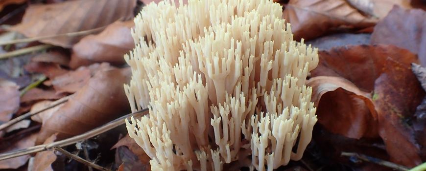 Nature TodayHij is moeilijk te vinden, de rechte koraalzwam. Maar als je er eenmaal een gevonden hebt, vind je er meestal wel veel meer. Het heet dat je dan een zoekbeeld hebt ontwikkeld. Dat helpt om ook andere, dezelfde vormen te vinden, daar waar je ze eerst niet zag. De rechte koraalzwam gaat door de crèmekleur helemaal op tussen het gevallen blad in het bos met alle gele en bruine tinten. De ‘takken’ van deze zwam staan in een tros recht omhoog en doen sterk denken aan koraal. Er zijn nogal wat soorten koraalzwammen, maar dit is een heel algemene zwam die voorkomt op onder andere snippers of oude takken van loofbomen. Nu moet je erbij zijn, want ze kunnen slecht tegen vorst.