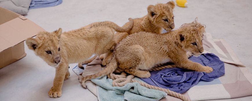 Vier leeuwenwelpjes en een zwart luipaardwelpje werden eerder dit jaar door individuen overgedragen aan verschillende dierenopvangcentra in Oekraïne. Vermoedelijk zijn drie welpjes als huisdier gekocht en afgegeven door de eigenaar om eventuele vervolging te voorkomen. De andere twee welpen zijn mogelijk door goedwillenden gered van fokkers die niet in staat of bereid waren voor hen te blijven zorgen tijdens de oorlog.