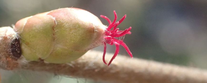 Voor nu is Hazelaar één van de eerste winterbloeiers die het vroege voorjaar aankondigt. Zie je een Hazelaar staan? Daag jezelf eens uit en kijk of je een roze bloem kunt vinden.