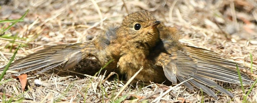 Ziet u een vogel op zijn buik in het zand liggen, dan betekent dat dat hij te veel of oud vet op zijn veren heeft en een zandbad neemt! Dat klinkt nou niet als iets waar je erg schoon van wordt… Maar toch wel. Ze draaien en schurken in droog, los zand en wrijven dat tussen de veren. Na een tijdje schudden ze de hele boel, inclusief vet, er weer uit. Zo blijven hun donsveren donzig en warm.