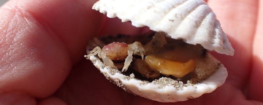 In Nederland hebben we ook een paar soorten erwtenkrabbetjes, denk bijvoorbeeld aan de piepkleine krabbetjes die je soms tegenkomt in de mossels op je bord (Pinnotheres pisum). Werner legt uit: “Voornamelijk de vrouwtjes verlaten hun gastheer nooit meer, waardoor ze zijn geëvolueerd in ronde, dikke krabbetjes, die niet meer normaal kunnen lopen.” In gastheren zoals mosselen en oesters eten de krabbetjes vaak mee met de schelp, of ze verzamelen het beschermende slijm van de gastheren. Om onopgemerkt te blijven leven in de schelpen, hebben erwtenkrabbetjes ook vaak een zacht rugschild ontwikkeld.