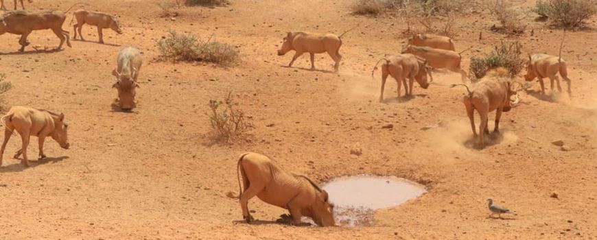 Foto's: IFAW (leadfoto: grazende wrattenzwijnen in een door droogte getroffen gebied in Somaliland); Michael Cuthbert, Alamy