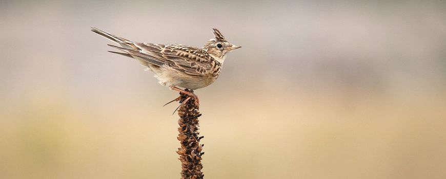 Nature TodayAl jubelend laten baltsende veldleeuweriken zich van grote hoogte uit de lucht vallen, om vlak bij het vrouwtje te landen. Nogal een manier om indruk te maken! Op mooie dagen kan je ze in het vroege voorjaar horen – en genieten. Nog niet zo lang geleden was hij wijdverspreid als boerenlandvogel, maar tegen de intensieve landbouw is de veldleeuwerik niet opgewassen. De broedgebieden zijn nu vooral nog in duinen en heidevelden, en in Zeeuws-Vlaanderen en Noordoost-Groningen. De mannetjes hebben nog een paar weken om een vrouwtje te versieren. Als de stelletjes gevormd zijn, maakt het vrouwtje een nest. Dat is niet meer dan een kuiltje in de grond. Vanaf eind maart worden de eerste eieren gelegd.