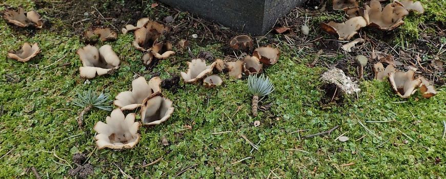 De cedergrondbekerzwam (Geopora sumneriana) is een grote bekerzwam, tot tien centimeter in doorsnee. In eerste instantie ontwikkelt hij zich ondergronds tot een bolletje. Hij valt pas op als hij wat omhoog komt en dan min of meer stervormig opent, waarbij de crèmekleurige binnenzijde zichtbaar wordt. De buitenkant is bedekt met een bruine ruige beharing waar vaak nog grond aan hangt. De cedergrondbekerzwam leeft in symbiose met ceders (Cedrus) die vooral in tuinen, parken en begraafplaatsen zijn aangeplant, met name Libanonceder en Atlasceder. Hij groeit er in groepen, soms spectaculair met honderden exemplaren, op de grond tussen de afgevallen naalden of stenige bedekking. Omdat tuinen privéterrein zijn, hebben we geen compleet beeld van zijn voorkomen in Nederland, maar hij wordt beschouwd als een vrij algemene soort. Hij houdt van een rijkere bodem met voldoende kalk. Die kan door menselijk handelen zijn ontstaan, waardoor hij ook gevonden wordt in van nature ongeschikte regio’s. De vruchtlichamen van cedergrondbekerzwam zijn met name in maart te vinden, maar het fructificatieseizoen loopt door tot eind april. Als je in je omgeving ceders weet te staan, ga dan eens kijken.