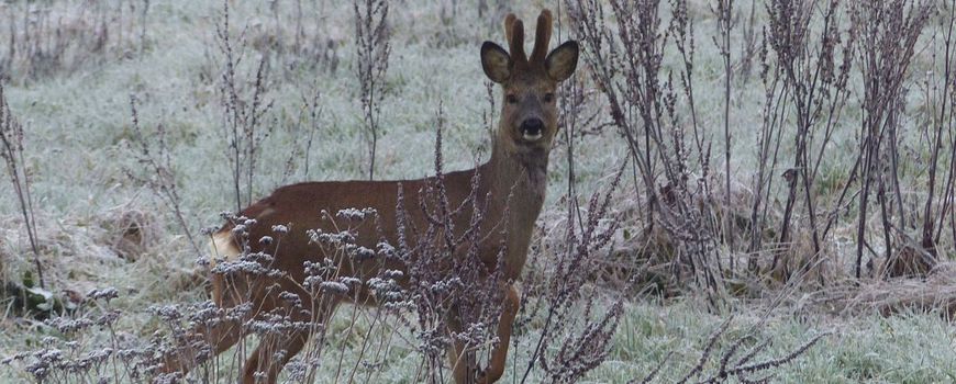 Nature TodayDe paartijd van het ree is in juli en augustus. Daarna hebben de mannetjes hun gewei niet meer nodig en valt het af. Ze gaan dus ‘kaal’ de winter in en zijn dan soms met de geweiloze geiten te verwarren. Maar al snel begint er een nieuw gewei te groeien. De geweien zijn nu al aardig groot – in tegenstelling tot die van het edelhert – en zijn bedekt met een zachte laag vel, de basthuid. Het nieuwe gewei groeit soms wel twee centimeter per dag! Bij sommige reebokken is het gewei nu al volgroeid, bij andere duurt het tot later in het voorjaar. De bloedtoevoer naar de basthuid stopt en die begint los te laten. Dat schijnt een ellendig gevoel te zijn en dan begint het ‘vegen’. De bokken zoeken jonge boompjes op die lekker soepel zijn. Ze proberen met alle geweld die akelige basthuid kwijt te raken door met het gewei tegen het boompje te schuren, dat precies tussen de kleine geweistangen past. Overal waar reeën voorkomen kan je in het voorjaar naast paden vaak beschadigde boompjes aantreffen. Daar is een reebok aan het werk geweest.