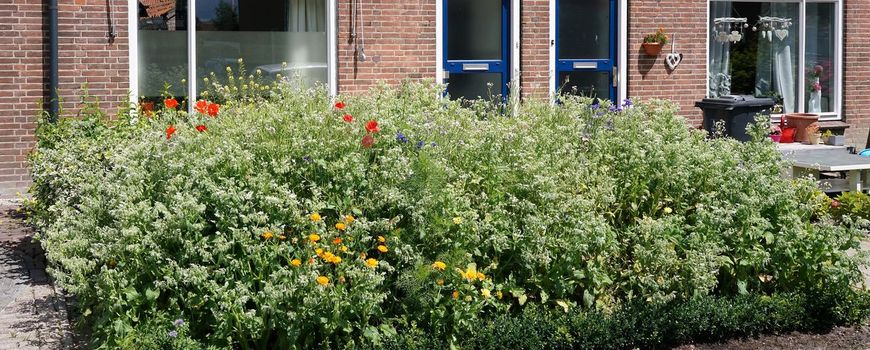 Woon je zelf in een gebied met weinig groen en kan je eigen tuin wel wat groen gebruiken? Dan is de eerste stap het wippen van tegels: maak minimaal 60 procent van je tuin groen. Wil je delen van je tuin toch verharden? Kies dan voor halfverharding, waterdoorlatende klinkers of een terras met brede voegen. Zelfs zonder voortuin kun je de voorkant van je huis vergroenen. Maak naast je voordeur of raam een geveltuintje. Haal een rij tegels weg en zet een paar mooie (klim)planten neer. Kijk eens naar de groene tips van Moesmeisje.
