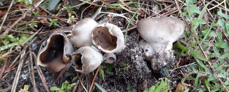 Platgetrapte Zwartwitte bokaalkluifzwammen