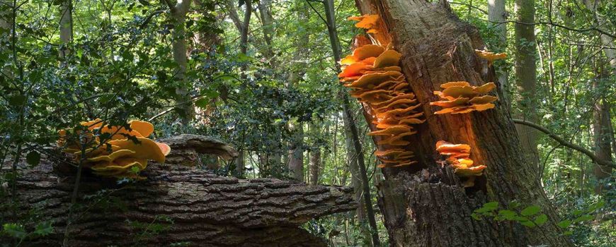 Paddenstoelen zijn op Voorne relatief bescheiden onderzocht dus er valt nog veel te ontdekken. Desondanks werden in 2016 maar liefst zes voor Nederland nieuwe satijnzwammen gevonden. Een heel apart accent geven de zich ontwikkelende, vaak vochtige bossen. In dit boek schetst paddenstoelenkenner Leo Jalink op basis van het archief van de Nederlandse Mycologische Vereniging de diversiteit aan soorten op berken, elzen en beuken. Deze geven een apart accent aan de duinstreek. Maar liefst 33 aan beuken gebonden soorten bleken in het Voornse landgoed Mildenburg (pdf: 844 KB) te zijn geachiveerd, van de algemene Rodekoolzwam tot de bedreigde Beukenfranjehoed.