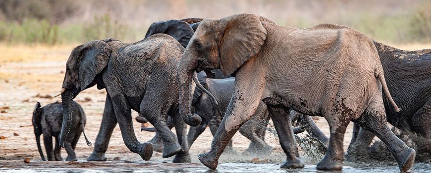 Foto's: Rudi van Aarde (leadfoto: een familie Afrikaanse olifanten loopt langs de oevers van een drinkplaats in Hwange National Park, Zimbabwe); Stacey Hedman / IFAW