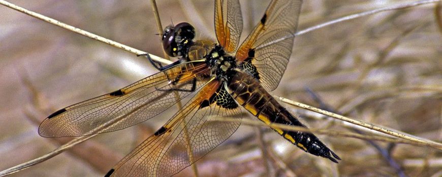 Nature TodayNa de eerste juffers begint nu ook het seizoen voor de ‘grote’ libellen. De larven wachten op een goed moment – warm weer – om uit te sluipen en het levensstadium als libel te beginnen. De viervlek is een van de vroege libellen en de eerste exemplaren zijn al gezien. Met het warmere weer komend weekend zullen er nog veel meer gaan vliegen. De viervlek kun je in het hele land zien. Het zijn vrij korte en stevige libellen waarvan het lijf wel spits toeloopt. De vleugels hebben gele aders en vier zwarte vlekjes. Viervlek dus.