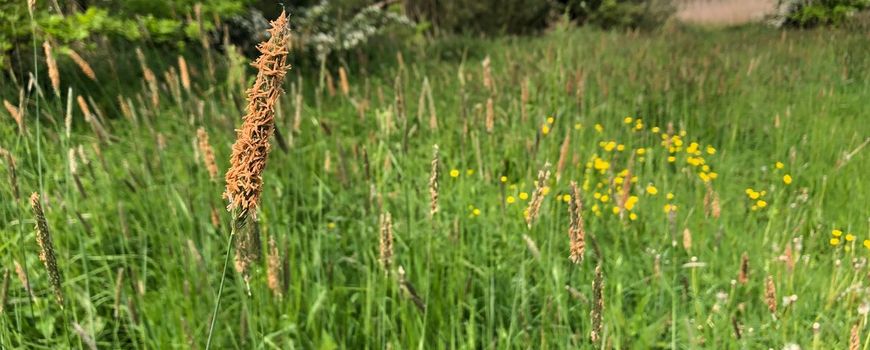 De Natuurkalender, Elkerliek Ziekenhuis, LUMC, Wageningen University, WeeronlineWe beleven een van de natste jaren tot nu toe. Compleet anders dan de recente droge jaren. Ideale omstandigheden voor grassen om te bloeien. De afgelopen twee weken waren de pollenconcentraties nog laag. Sinds eind april/begin mei treffen de twee pollentelstations van het LUMC en het Elkerliek Ziekenhuis een graspollenconcentratie van vijf of meer pollen per kubieke meter lucht aan in de pollenvallen op hun dak. Toch ondervonden mensen met een graspollenallergie al wel wat klachten, doordat de hoeveelheid graspollen in de lucht op straatniveau hoger is. Ook is het gras plaatselijk al verder ontwikkeld.