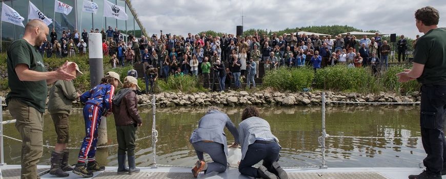 ARK Rewilding NederlandIn de Biesbosch zijn 29 jonge Europese steuren, elk ruim dertig centimeter lang, losgelaten. Een juichende menigte sloeg het gade vanaf de kade. Professor Pieter van Vollenhoven – een bevlogen natuurliefhebber die acht jaar eerder op deze plek het Biesbosch MuseumEiland opende met het overhandigen van enige vijversteuren – riep bij deze gelegenheid op tot een veel duidelijker georganiseerd natuurbeleid. Zodat deze steuren in de toekomst niet meer op hoeven zwemmen tegen een traag stromend en troebel overheidsbeleid.