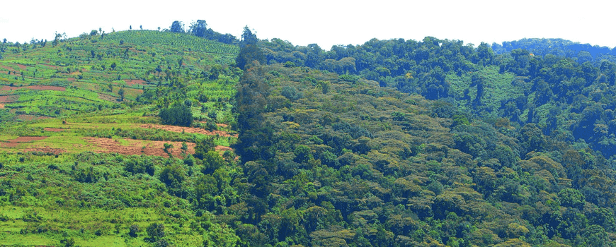 Foto's: Douglas Sheil (leadfoto: beschermd gebied dat grenst aan akkerland (Bwindi Impenetrable National Park, Oeganda)); Tropical Ecology Assessment and Monitoring Network
